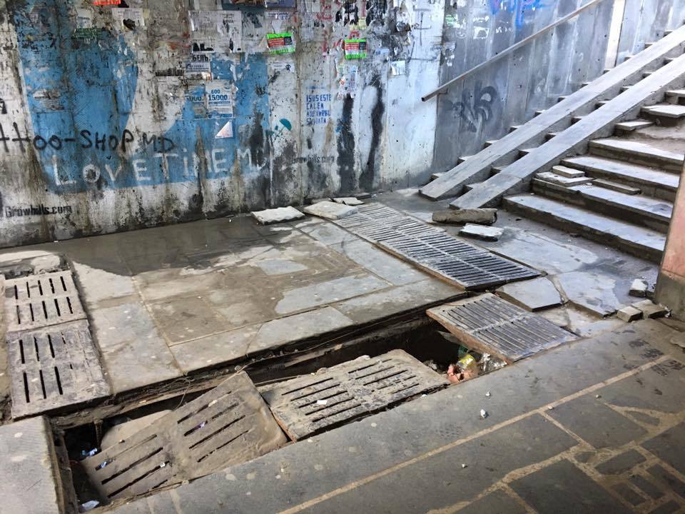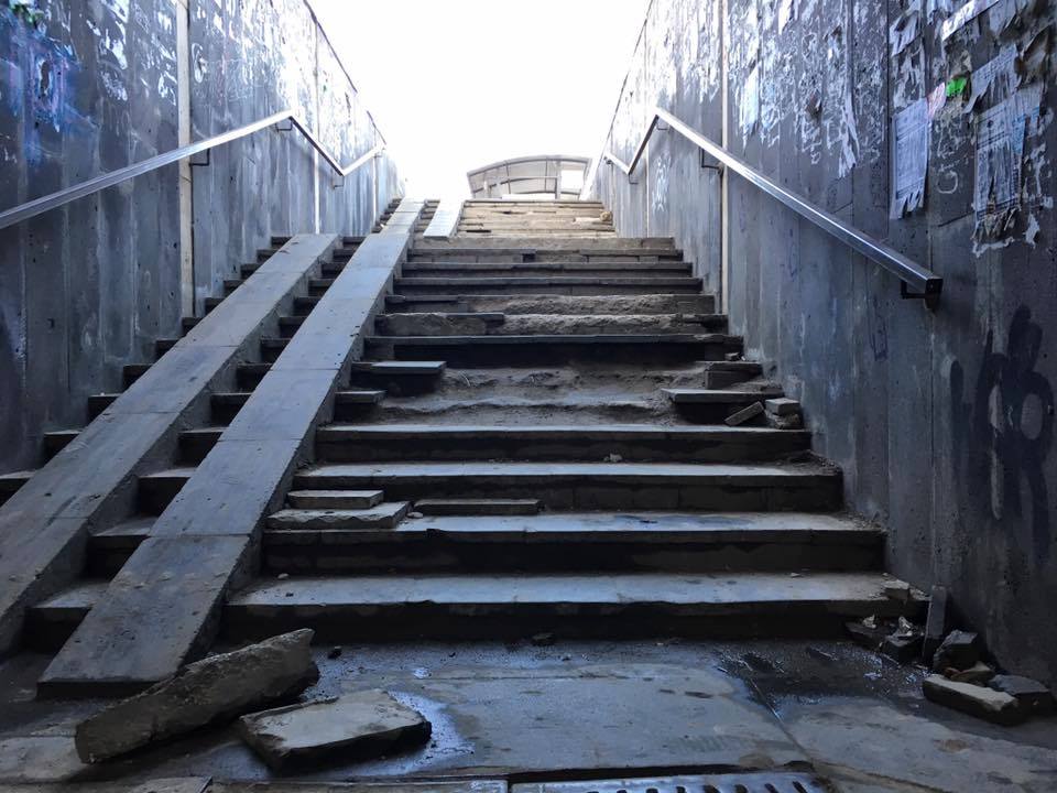 Un exemplu de trecere subterană practic distrusă este cea amplasată în apropiere de Spitalul clinic municipal Nr. 1. Din imagini se vede în ce stare este aceasta şi ce pericol prezintă pentru trecători.